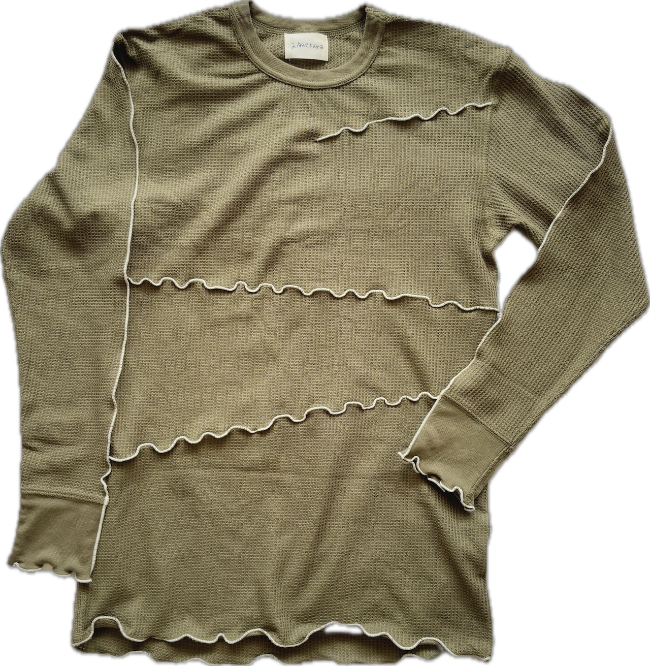naminamiワッフルクルーネック長袖ロンT(khaki×natural)