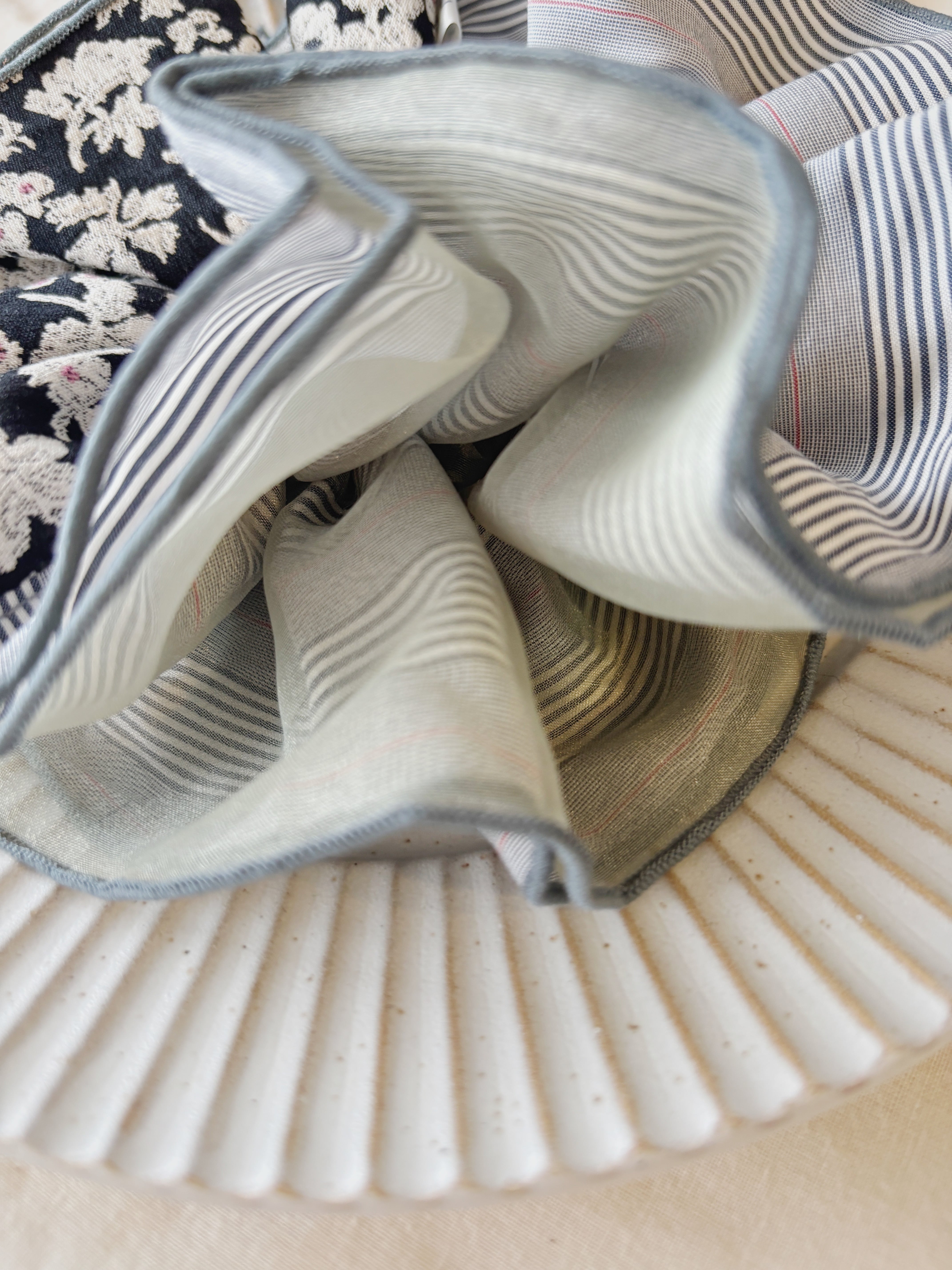 カーキのオーガンジー生地との組み合わせ